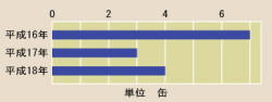 ガイナ塗布前の平成16年は7缶使用していたが平成17年は3缶、平成18年は4缶とそれぞれ削減。