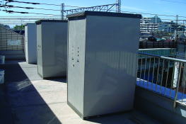 ガイナの冷房率向上を試験する為、無塗装の物置とガイナ塗布の物置に同じエアコンを設置し、