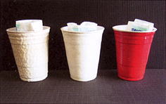 プラスチック製のカップに、氷水を入れカップ表面からの結露発生具合を比較。