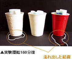 上記実験では、160分後もノン結露塗布カップからの結露発生は一切なし。